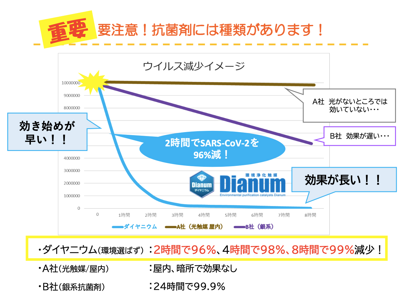 - 奈良県立医科大学との共同研究により、ダイヤニウムの新型コロナウイルスに対する有効性が確認できています。